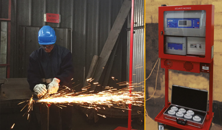 The FIRE Temp system consists of a frame carrying an addressable SSI panel and a box for sending alarms and fault reporting by SMS or email. It is based on radio technology, which combines flexibility and simplicity for optimal positioning of detectors on the work site.